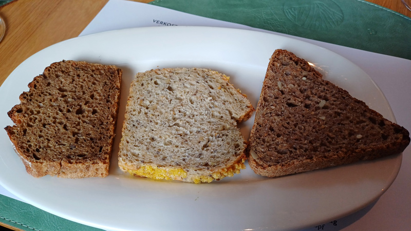„Deftig und kräftig“ nannte sich der nächste Brotteller mit Holzofenbrot, Amadeus-Brot und Finnenbrot. Neben den Aufstrichen kam feiner Rohschinken, Landjäger und Käsewürfel, Ziegenkäse in Pesto aus Au, sowie sündhaft gute Spinat- und Käseknöderl auf den Tisch.
