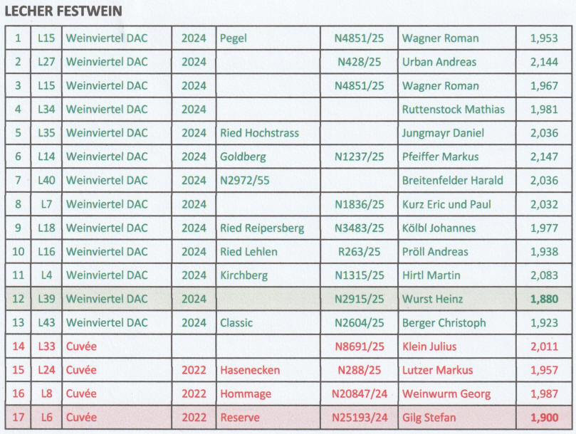 Kellermeister des Landesweingutes Niederösterreich, Ing. Leo Wurst leitet seit Jahren die Blindverkostungen im Vorfeld in Niederösterreich, Willi Hirsch vom Vorarlberger Sommelier-Verein leitet die Siegerverkostung am Arlberg. Natürlich sind und waren auch die beiden Initiatoren des Lecher Festweines, PETER BURGER vom Hotel Berghof in Lech und TONI HONSIG von der Generali-Winzer Initiative Probus dabei. Neun Dipl. Sommeliers und Weinakademiker vom VSOV sorgten ebenfalls mit ihrer Expertise für das richtige Ergebnis der heurigen Verkostung
